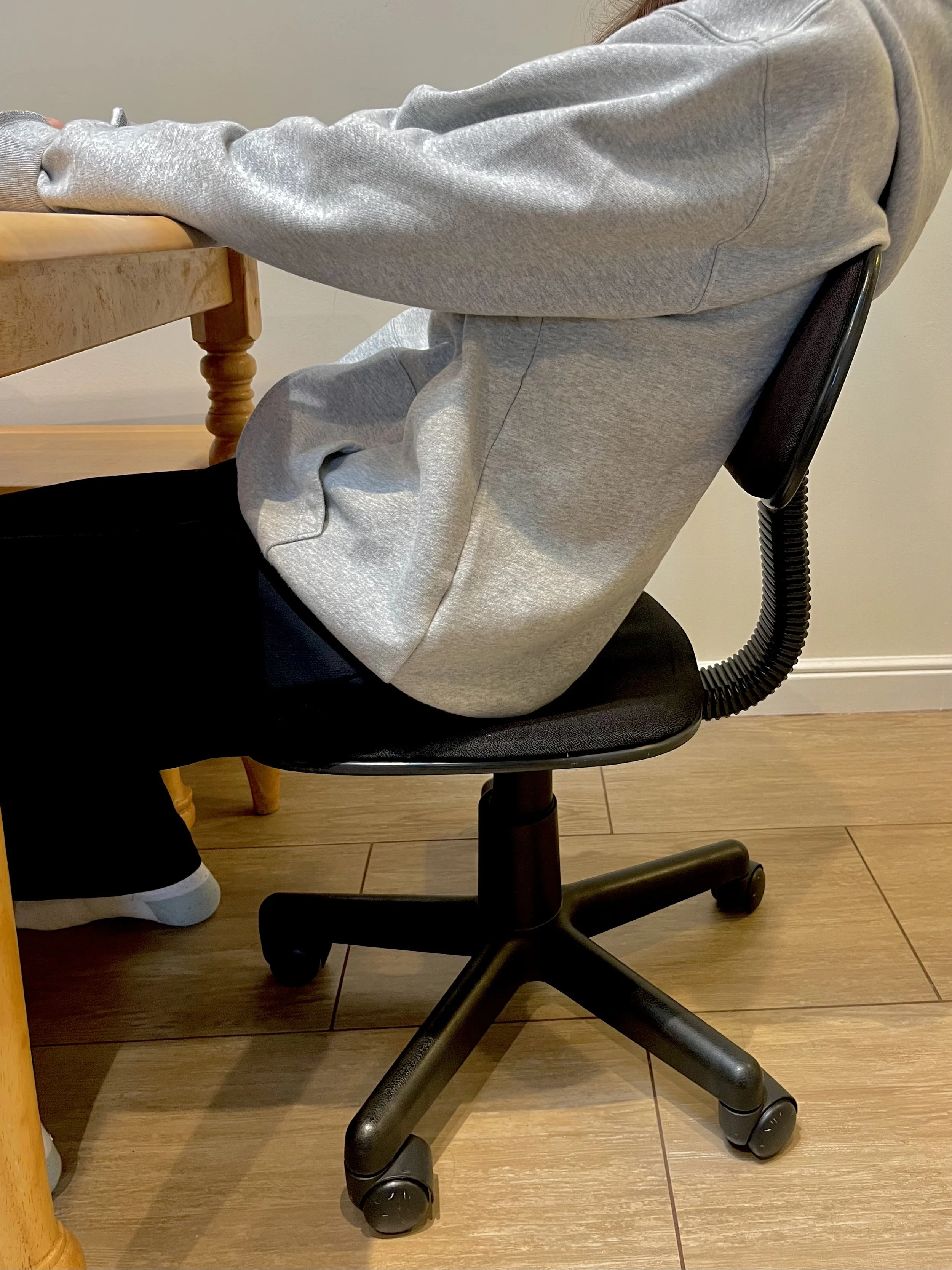 To validate my initial research, I conducted three rounds of testing with student volunteers seated for prolonged periods in their typical home settings using dining chairs and inexpensive office chairs lacking proper lumbar support.
