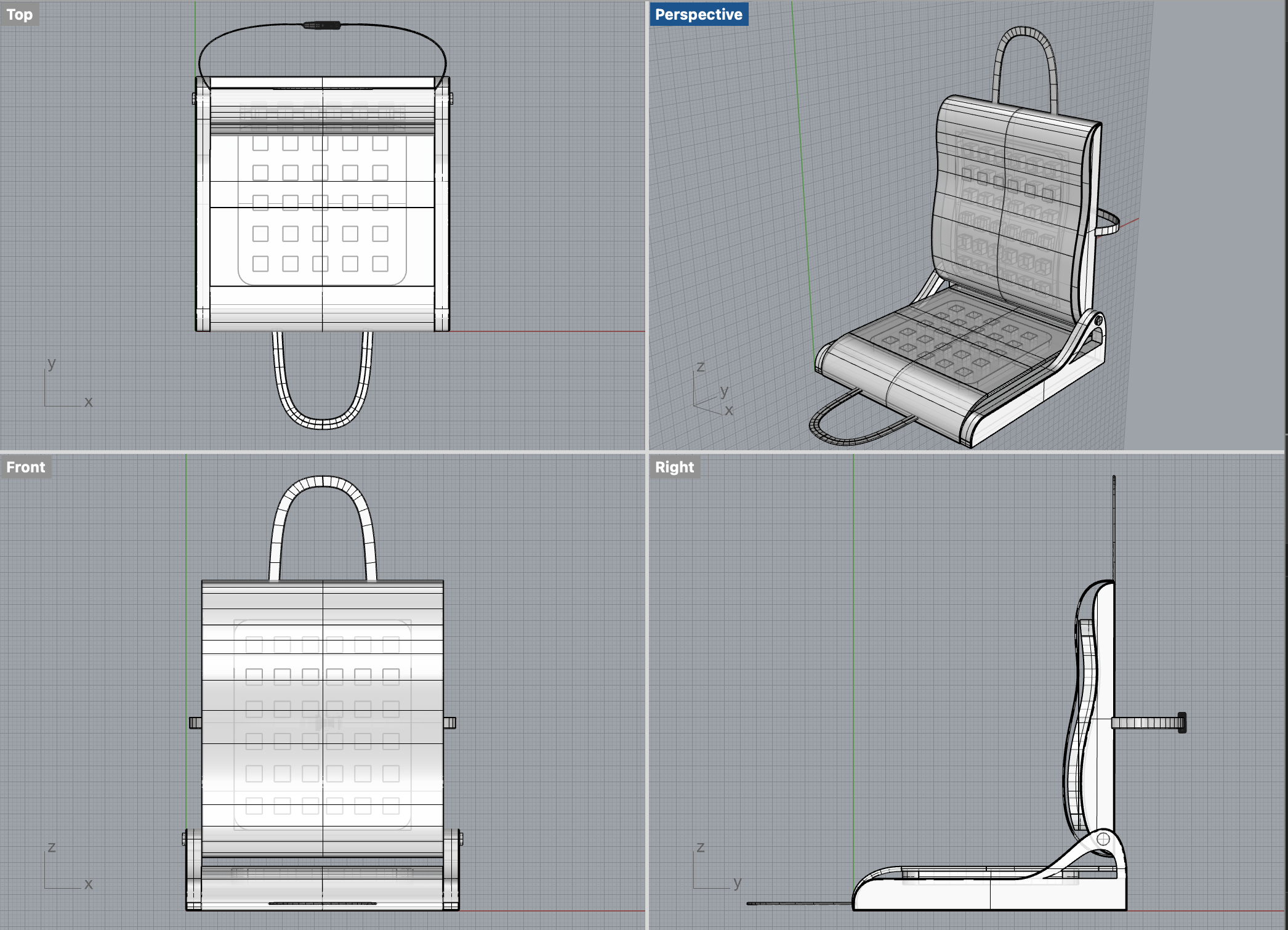 The process allowed me to further iterate on the visual elements and begin conceptualizing the folding mechanism as well as lumbar curvature. This development also supported the consideration of materials and fabrication techniques.