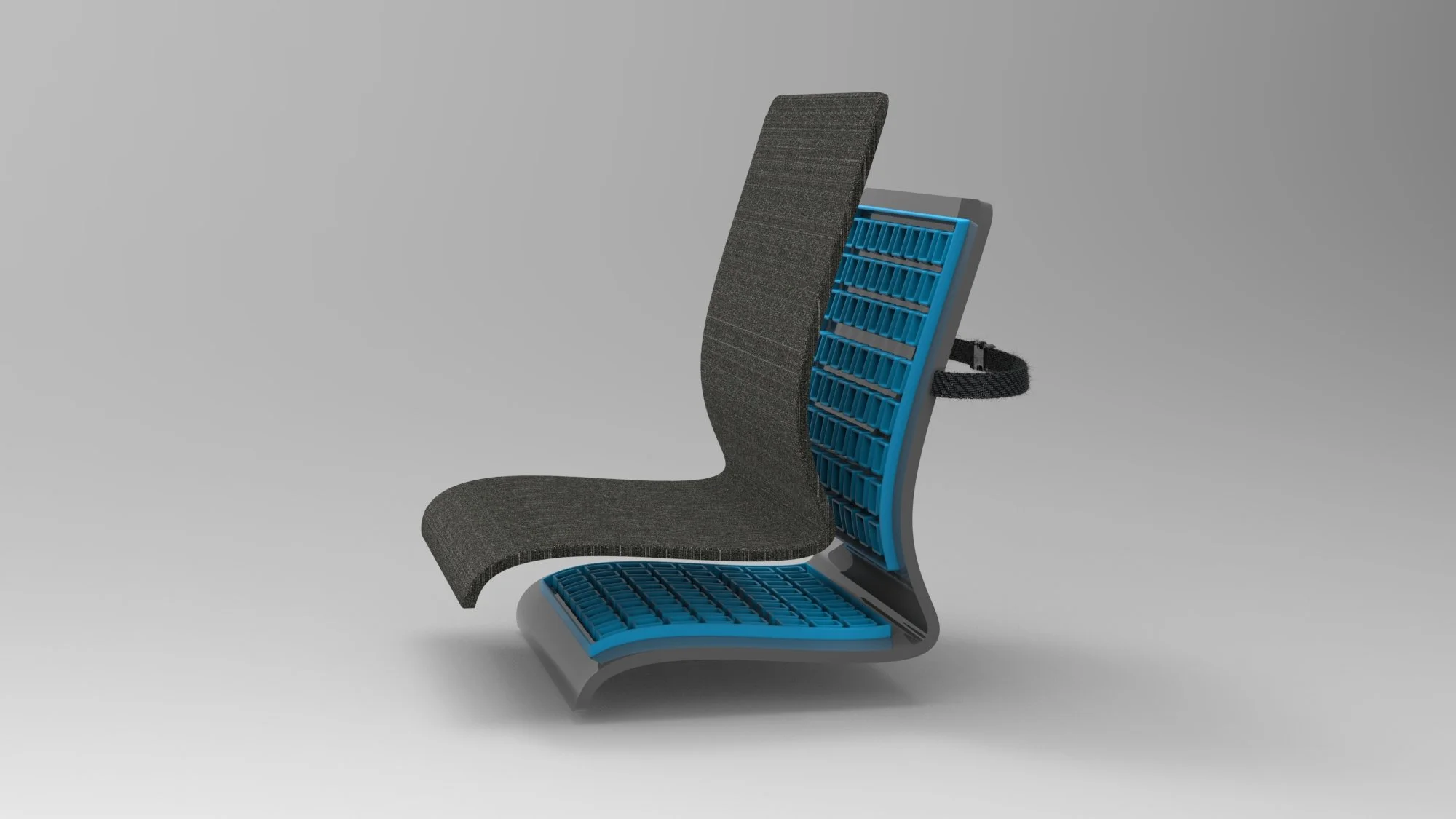 The proposed design is a seating solution that works in tandem with the user’s existing space and furniture and integrates seamlessly. Employees with remote or hybrid positions can enjoy the benefits of ergonomic seating without for expensive and bulky office seating.