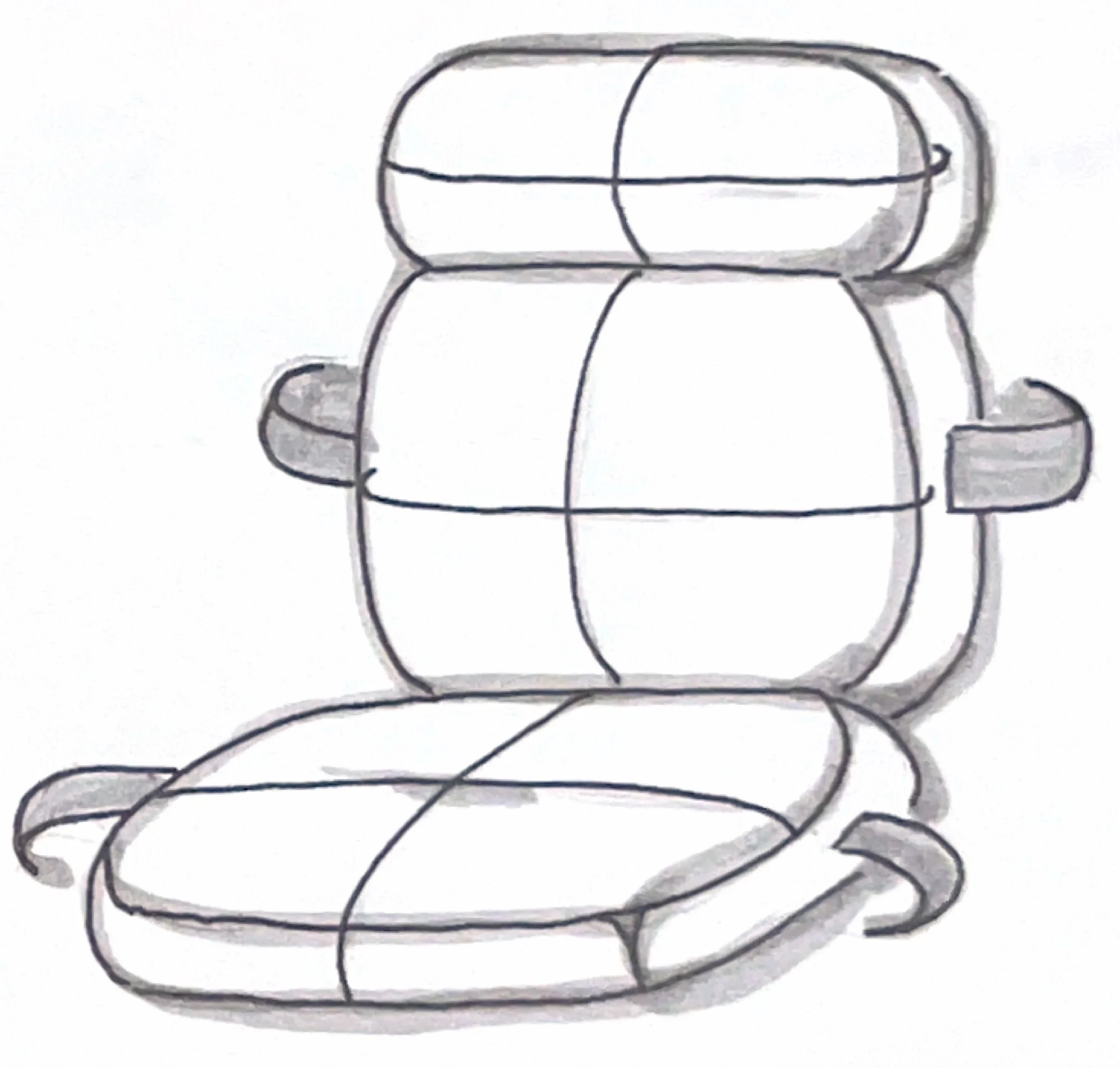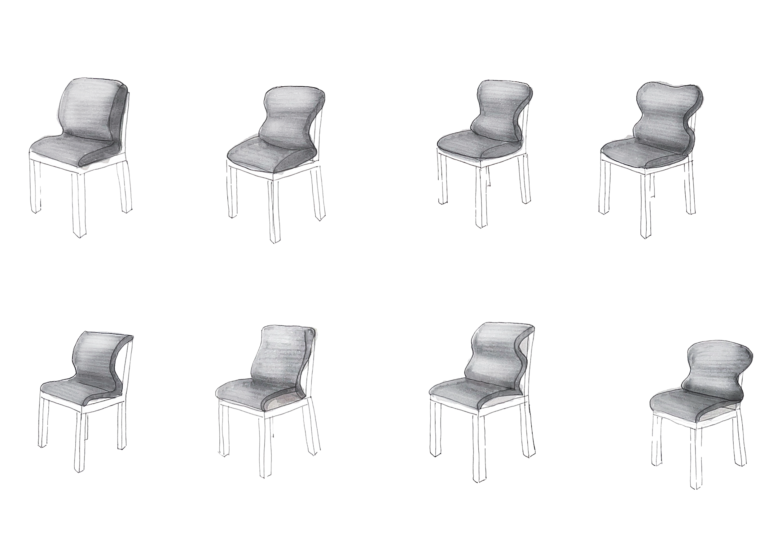 Sketch iterations helped to explore form, function, and structure of the seat’s base and mechanisms.