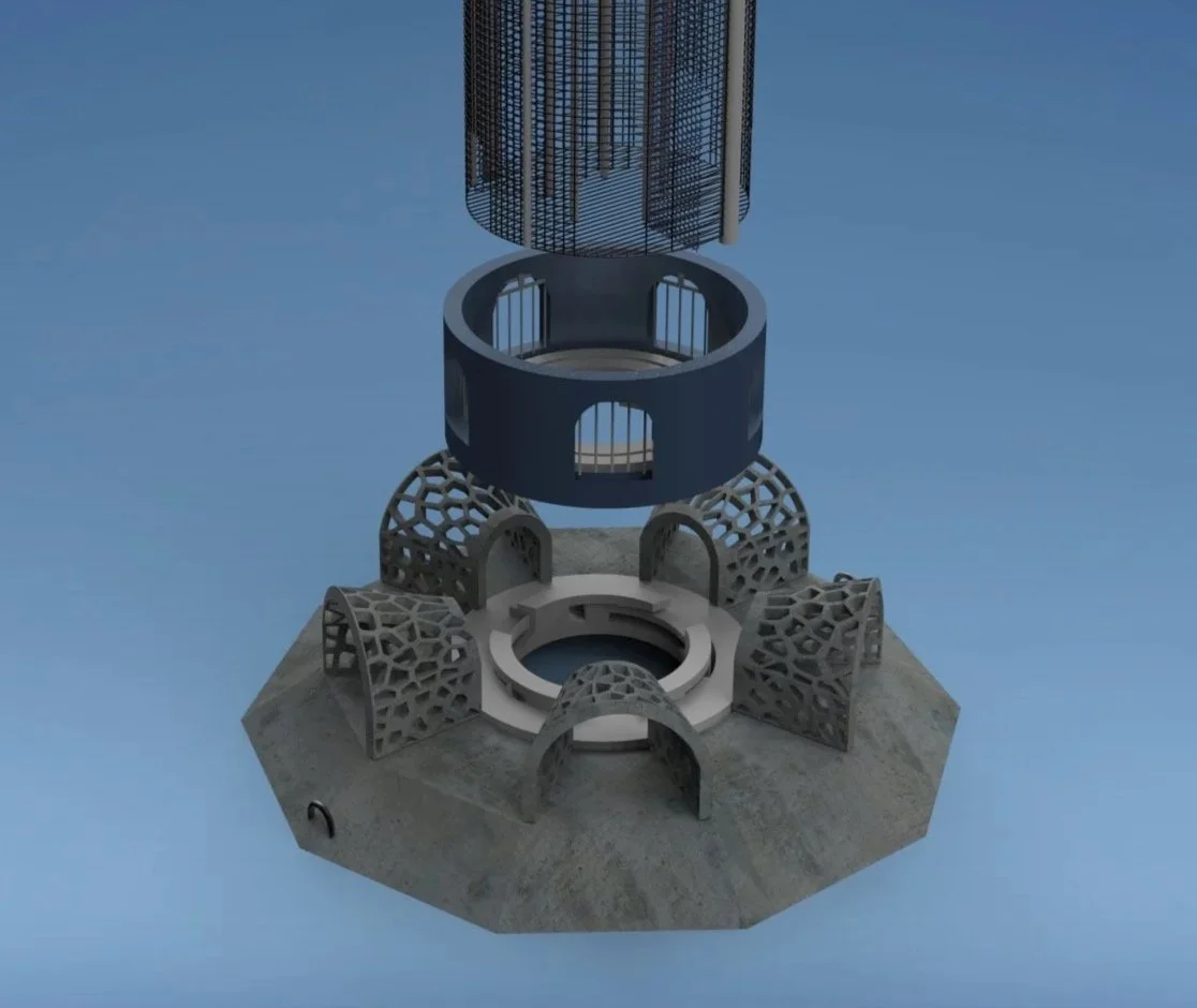 Marine-safe concrete made with recycled urchin calcium carbonate was used to create a biodegradable, chemically neutral, and locally sourced foundation.